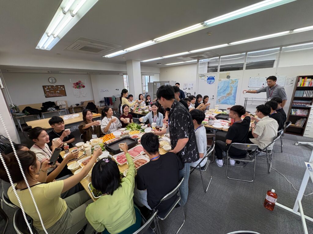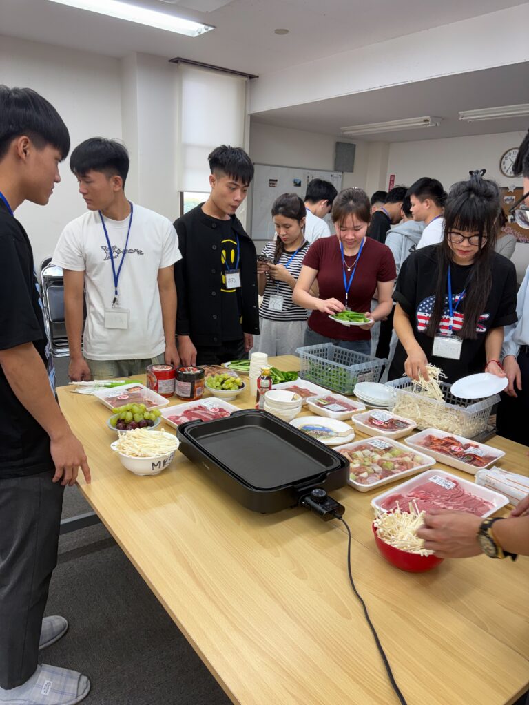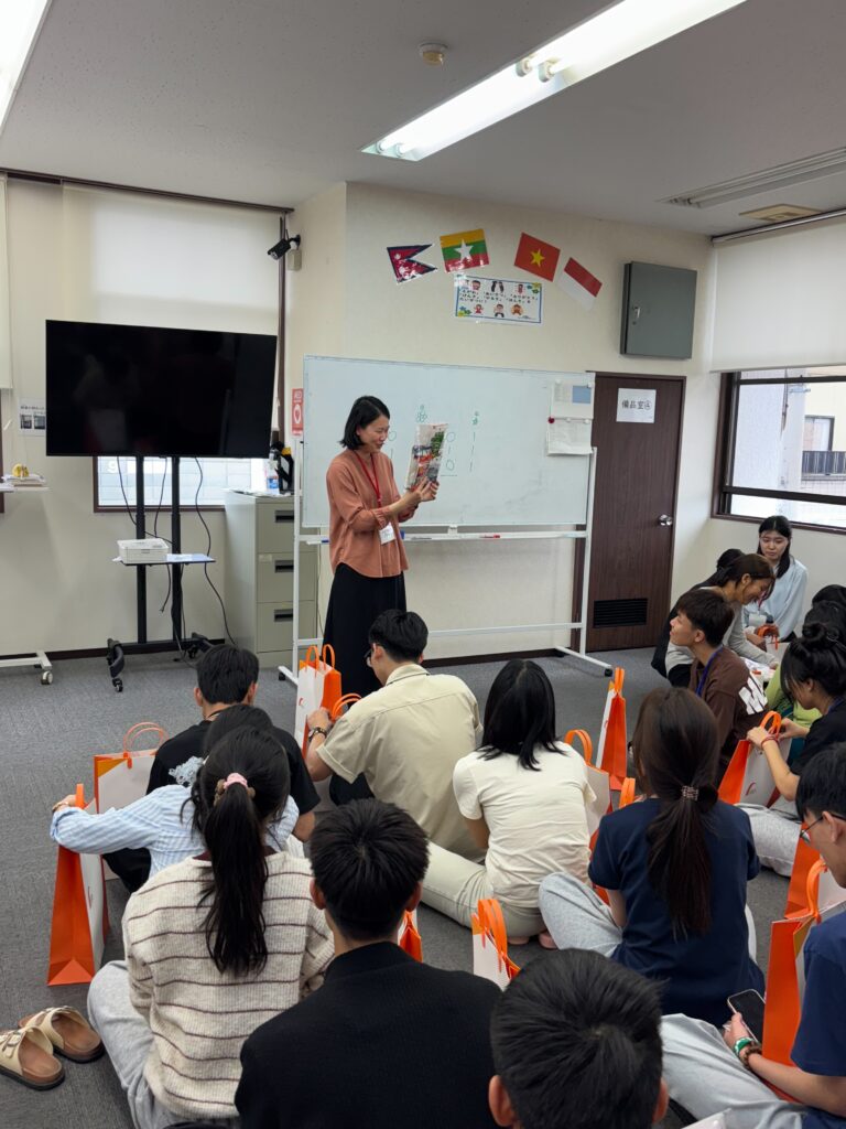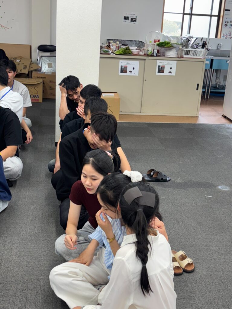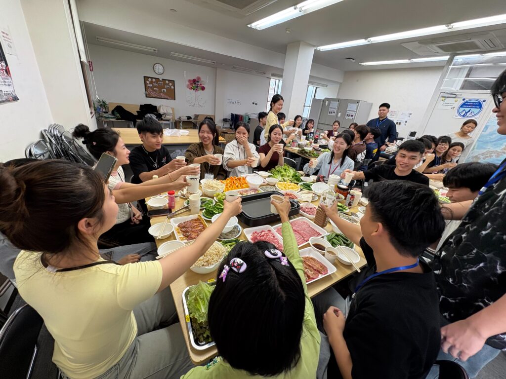 食事しながら、野菜、果物などの言葉も勉強しました。実習生と積極的コミュニケーションをとりました。
